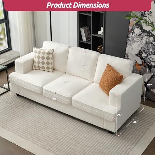 Boucle Couch, Couches and Sofas, Comfy Couch, Couches for Living Room, Sleeper Sofa with Extra Deep Seats, Modern Sofa, Teddy Velvet, Oyster White