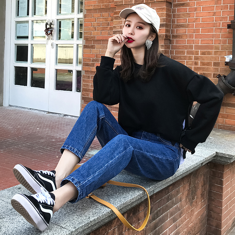 cotton White Jeans for Women High Waist Harem Mom Jeans spring plus size black women jeans denim pants beige blue