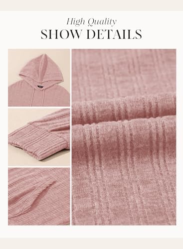Dokotoo Hoodies for Women Casual Long Sleeve Textured Knit Loose Drawstring Hooded Sweatshirt with Pocket
