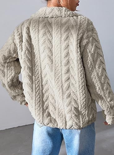 Dokotoo Fleece Jacket for Women Zip Up Windproof Long Sleeves Stand Collar Front Pockets Oversized Outwears