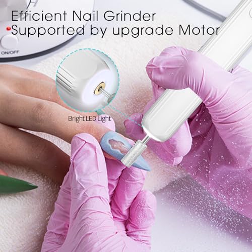 Electric Nail Drill, Professional Manicure Pedicure Kit, Cordless Electric Nail File Set, Rechargeable Pedicure Tools for feet, 3 Speeds Hand Foot Care Nail Drill for Thick Nail Toenail Cuticle-White