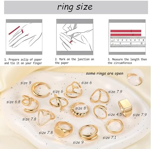 ·Design: You will receive a set,12 pcs of gold rings, including chunky dome ring, croissant ring, double dome Ring, gold twist ring, heart rings, gold braided ring, square signet ring, adjustable chain link ring and so on.