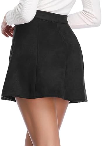 Fuinloth Women's Faux Suede Skirt Button Closure A-Line High Wasit Mini Short Skirt