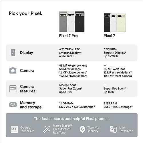 Meet Pixel 7 Pro, Google’s best-of-everything phone. Powered by Google Tensor G2, it’s super fast and secure, with an immersive display, amazing battery life, and the best Pixel camera yet.[17]
