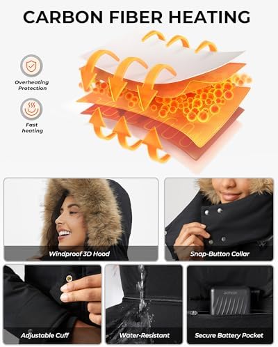 Heated Jackets for Women with 18400mAh 12V Battery Pack - Windproof Parka Womens Heated Jacket with Detachable Hood
