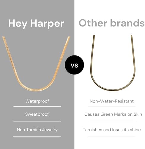 Hey Harper Nassau Necklace - Waterproof & Sweatproof Simple Womens Necklaces for Everyday Wear - Silver, Rose Gold, Gold Necklaces for Women - Stainless Steel Necklace - Herringbone Chain with 14k Gol