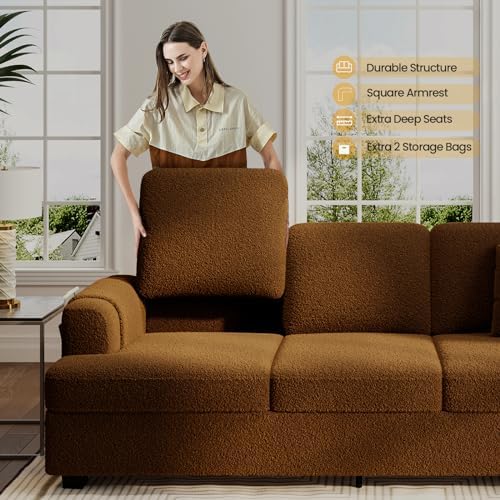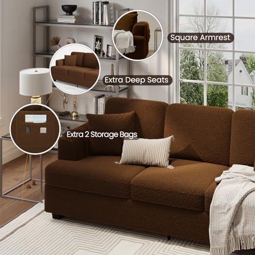 KKL Deep Seat Sofa 89" with Throw Pillow, Modern Sofa, Couches for Living Room, Comfy Sofa, Sleeper Couch, Bouclé, Brown