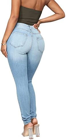 Women's High Waist Skinny Stretch Jeans feature a unique blend of cotton, polyester and spandex that will slim your midriff, lift your hips, lengthen your legs and hug you in just the right spot.