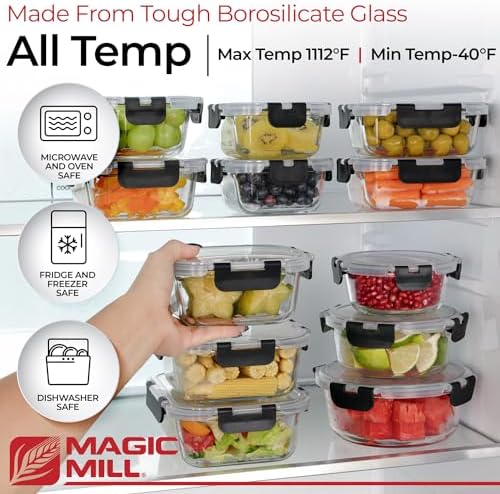 Dive into the world of Magic Mill, where every container has its perfect place! Our 24-piece set offers a variety of sizes and shapes to cater to every storage need. Whether it's leftovers, sauces, or salads, we've got you covered. Nest and stack them seamlessly in your pantry or kitchen corner. The clear glass design lets you spot what you need at a glance. With Magic Mill, your kitchen routines just got a whole lot smoother!