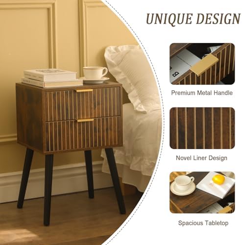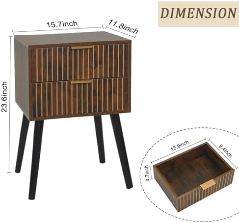 The handmade liner pattern design embraces classic and modern vibe, nightstand with two drawers provides more spaces to hold essential items.