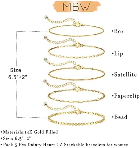 MBW Gold Bracelets for Women, 14K Dainty Gold Plated Stackable Bracelets for Women Trendy Gold Bracelet Stack Set Waterproof Chain Bracelets Paperclip Adjustable Tennis Minimalist Tiny Cute Jewelry