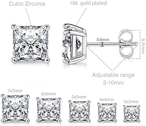 MDFUN 18K White Gold/Yellow Gold/Rose Gold Plated Princess Cut Square Clear Cubic Zirconia Stud Earring Pack of 5 Pairs