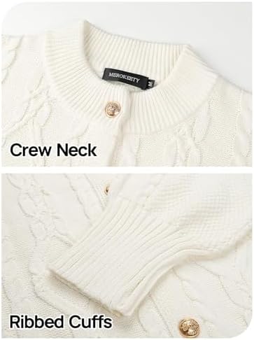 Upgrade your wardrobe with the MEROKEETY Women's 2024 Fall Long Sleeve Sweater Cardigan. Made of soft, thick fabric, this chunky cable knit cardigan offers both warmth and style for the cold season.