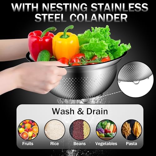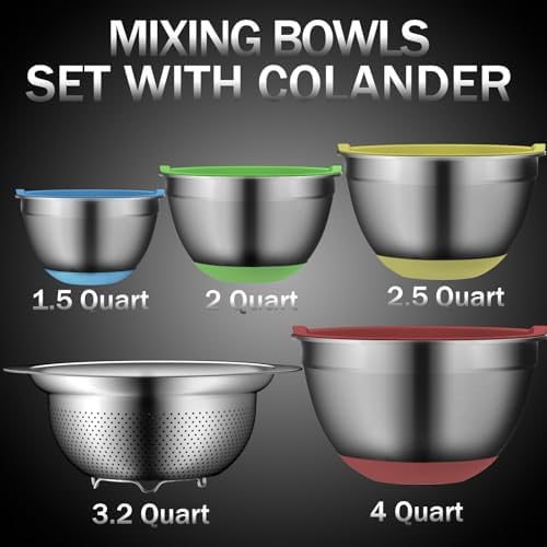 Mixing Bowl Set and Colander - Stainless Steel Mixing Bowls - Mixing Bowls with Lids Set - Kitchen Gadgets 2024 Nesting Salad Bowls with Strainer for Mixing & Preping & Baking, Multicolor