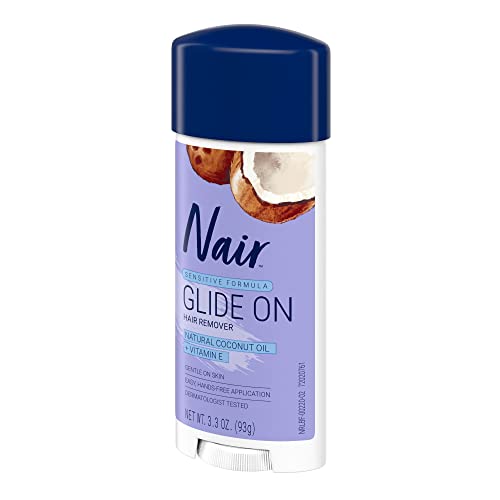 Easy to apply, easy on the skin. Nair Sensitive Formula Glides Away with Coconut Oil and Vitamin E gives you the power to remove hair right where you want it — without touching the formula. With our hands-free applicator, you’re in control. While it’s strong enough to get rid of unwanted hair below the skin’s surface, it’s also gentle enough to take care of your sensitive skin. Infused with 100% natural coconut oil and vitamin E, gentle is the new strong. Perfect for: Legs, arms, underarms and bikini area. Not for use on face. Sensitive skin. Normal to coarse hair. Gentle on skin: Our iconic hair removal formula comes in a sensitive version, so it’s powerful enough to take care of your unwanted hair but gentle enough to care for your skin. Easy, hands-free application With a touch-free applicator, you can take care of your hair removal without touching your hair remover. It’s perfect for hard-to-reach areas, too. Dermatologist tested. Trust the experts. Not only has Nair been the go-to hair removal brand for over 80 years, we also pass all our products by skincare professionals.