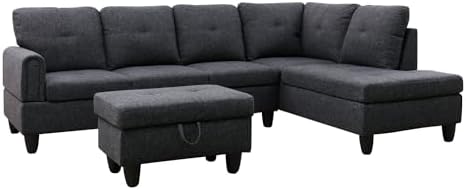 NicBex Couches for Living Room L Shaped Couch Upholstered Futon Sofa Comfy Linen Modular Sofa 3-Piece Sofa Set with Storage Ottoman for Apartments, Living Room and Office, Black Grey