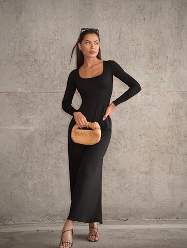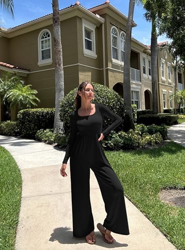 OQQ Women Wide Leg Pants Jumpsuits One Piece Long Sleeve Square Neck Jumpsuits
