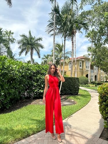 OQQ Womens Jumpsuits Dressy Crew Neck Sleeveless One Piece Outfits Casual Wide Leg Pants Jumpsuits