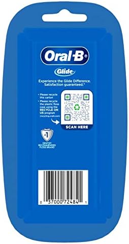 Oral-B Glide Pro-Heath Comfort Plus Floss is tough on plaque yet gentle on gums. Oral-B Glide slides up to 50% easier in tight spaces compared to regular floss while effectively removing plaque between teeth and below the gumline. This strong, smooth, and shred resistant floss provides a fresh minty clean feeling after use. Oral-B is the #1 Dentist Recommended Floss Brand. Recycle the plastic floss case using the Recycle on Us program (recycling.oralb.com). Carton is recyclable. Smile with confidence and feel the Glide difference! Satisfaction Guaranteed, or your money back. For guarantee, call 1-877-769-8791 within 60 days of purchase with UPC and receipt.