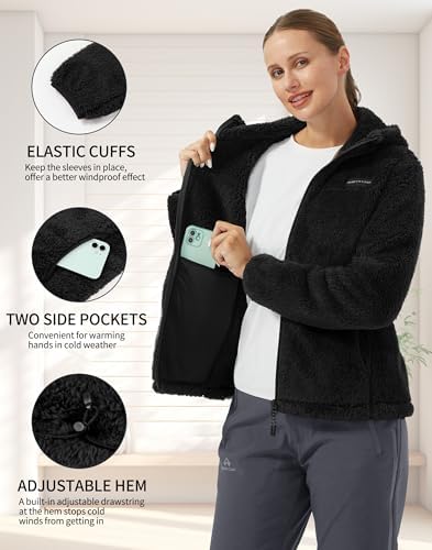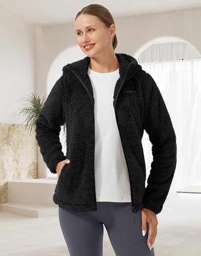 Pioneer Camp Women's Fuzzy Fleece Jacket Full Zip Up Lightweight Warm Soft Fleece Coat with hood for Spring Fall Winter