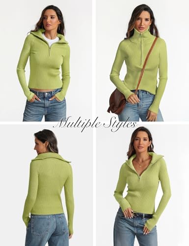Crafted in a soft knit base, this trendy sweater is designed with half zipper, collared v neck and longer sleeves.