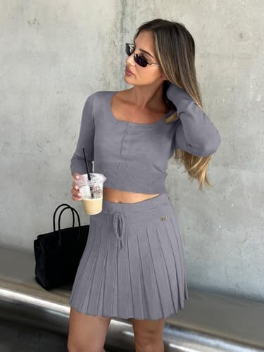REORIA Women's Trendy Sexy High Waisted Pleated Skirts A Line Flared Going Out Mini Knit Skirts