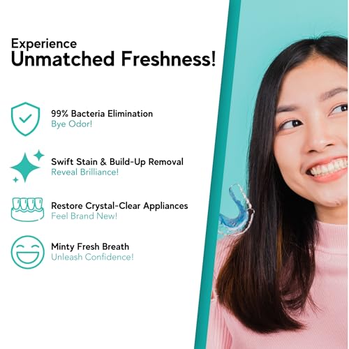 Retainer & Mouth Guard Cleaner Tablets - Mint Flavor Retainer Cleaner Tablets & Invisalign Cleaner -Denture Cleaning Tablets, Denture Cleaner, Aligners, Night Guard - Oral Dental Care FSA HSA Approved