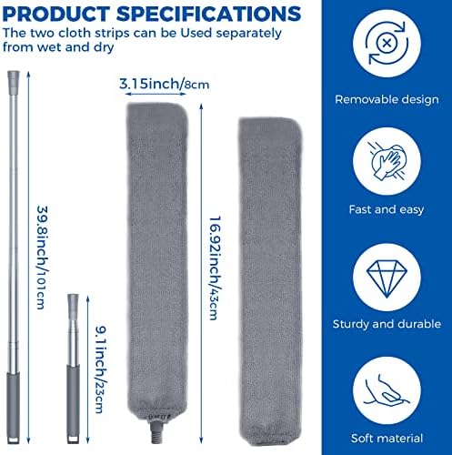 Retractable Gap Dust Cleaner Cleaning Tools with 2 Microfiber Dusting Cloths Long Handle 60inches Washable and Retractable Duster Brush for Cleaning Under Appliances Furniture Couch Fridge