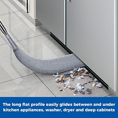 Dust Brush Under Appliance Microfiber Duster with Extension Pole (30 to 60 inches) Bendable, Washable, Extendable Gap Dusters forFurniture