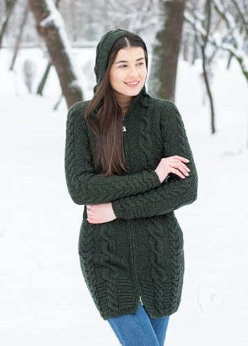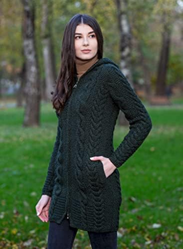 Stay warm and fashionable this fall and winter with this Aran Cable Knit Hooded Zip Cardigan. This Cardigan is made of 100% Merino wool, which will keep you insulated and comfortable outside in the cold with its warmth, moisture-wicking breathability, and rich softness. Giving this piece its fresh style versatility and practicality is a hoodie that can be worn up or down. The full zipper and side pockets also bring chicness and practicality, as the zipper is perfect for quickly layering up or down and the pockets are convenient for holding small items or warming the hands. This hoodie is perfect for everyday wear and will definitely become a wardrobe favorite!