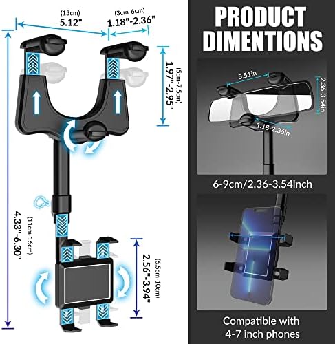 See Details Customer Reviews 3.9 out of 5 stars 5,344 4.2 out of 5 stars 764 3.7 out of 5 stars 213 3.7 out of 5 stars 48 Price $16.99 $13.99 — — Mounting Type Rear View Mirror Rear View Mirror Dashboard, Windshield Dashboard, Windshield Special Features Adjustable Adjustable Adjustable Adjustable Compatible Phone Models All smartphones 4''-7'' All smartphones 4''-7'' All smartphones 4''-7'' All smartphones 4''-7'' Compatible with Vehicle Type Automobile Automobile Automobile Automobile Color Black Black Black Black Brief content visible, double tap to read full content.Full content visible, double tap to read brief content.