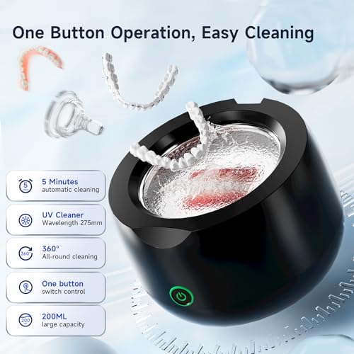 My Invisalign treatment was recently converted to night wear only.Although they work well, I wasn't a fan of using the cleaning crystals.If left in the solution too long, the appliances can be damaged, discolored, etc. (I can attest, this is true, as 1 set of my invisaligns are discolored, because I forgot and accidentally left them in the solution for about an hour).Enter this little gadget!!I love that it cleans with UV light; the soundwaves are a bonus, as far as I'M concerned! It's incredibly easy to use...put the appliances in the bowl, add a little water, close the lid, turn it on, and you're done!It auto shuts off after 5 mins, so I can carry on without remembering to get the appliances out of the chemicals.