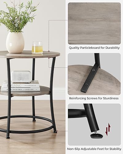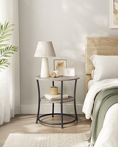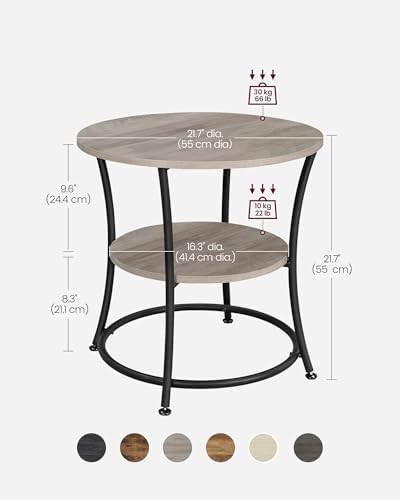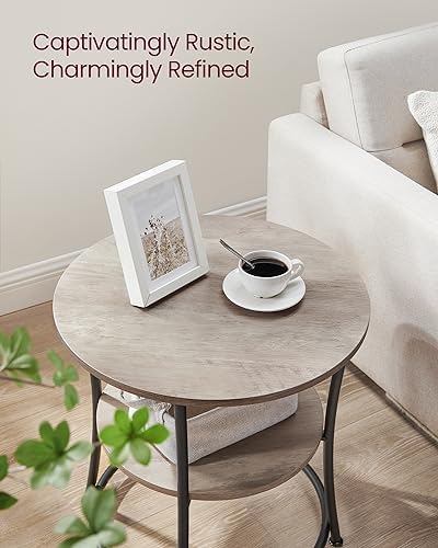VASAGLE Side Table, Small Round End Table with Lower Shelf, Nightstand for Small Spaces, Living Room, Bedroom, Rustic Walnut ULET283T41