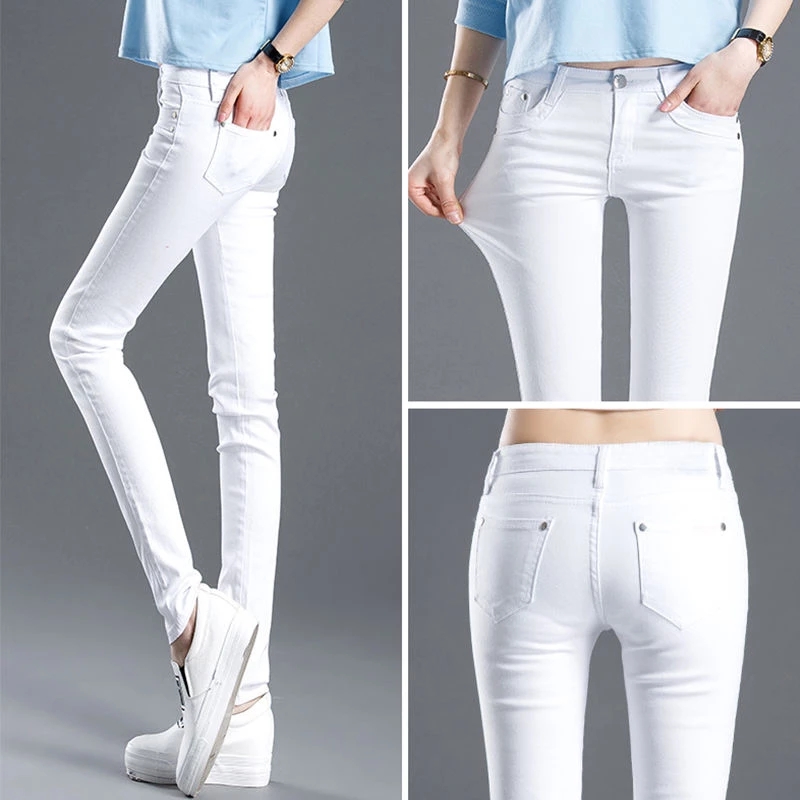 white high waist jeans women spring elastic forcejeans woman skinny slim OL office lady denim pencil pants female