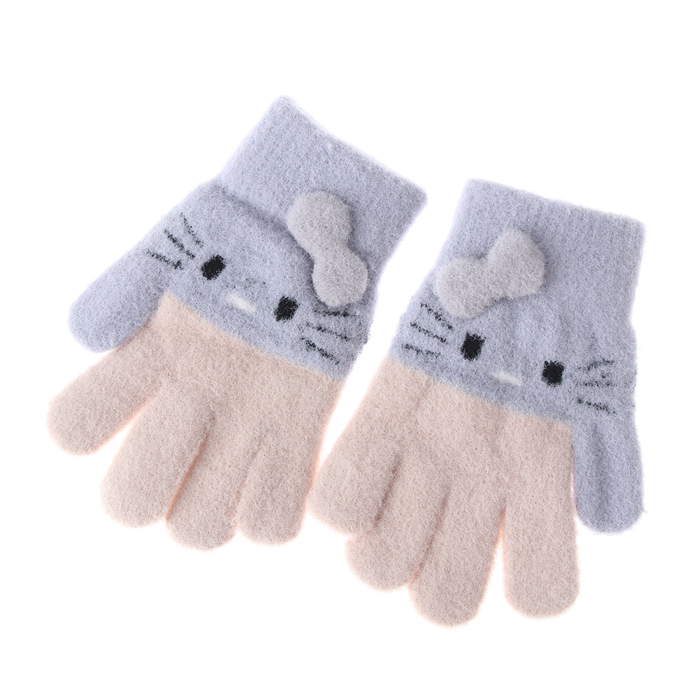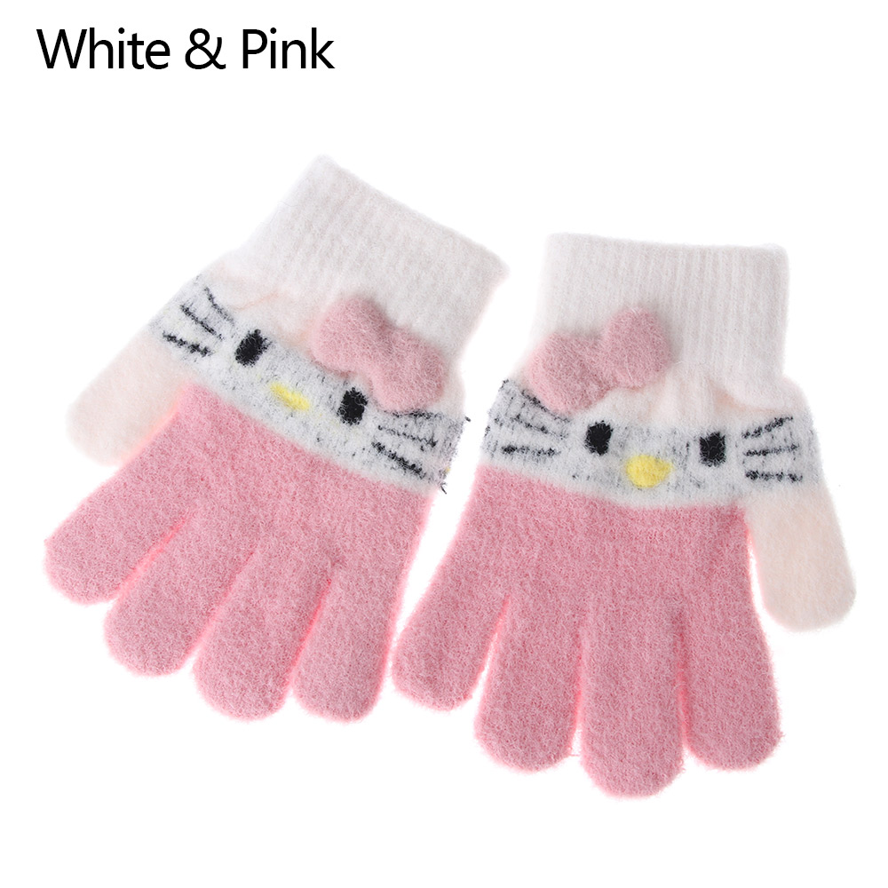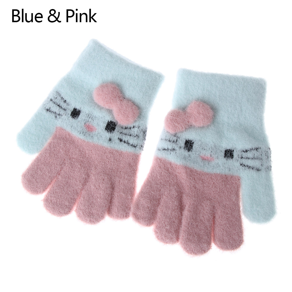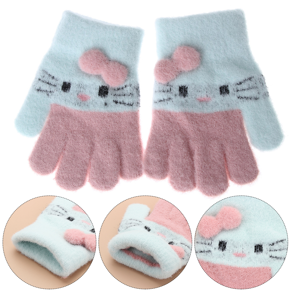 1Pair Kids Knitted Gloves Winter Warm Children Full Fingers Mittens Girls Cute Cartoons Soft Gloves for 3-10 Years Old