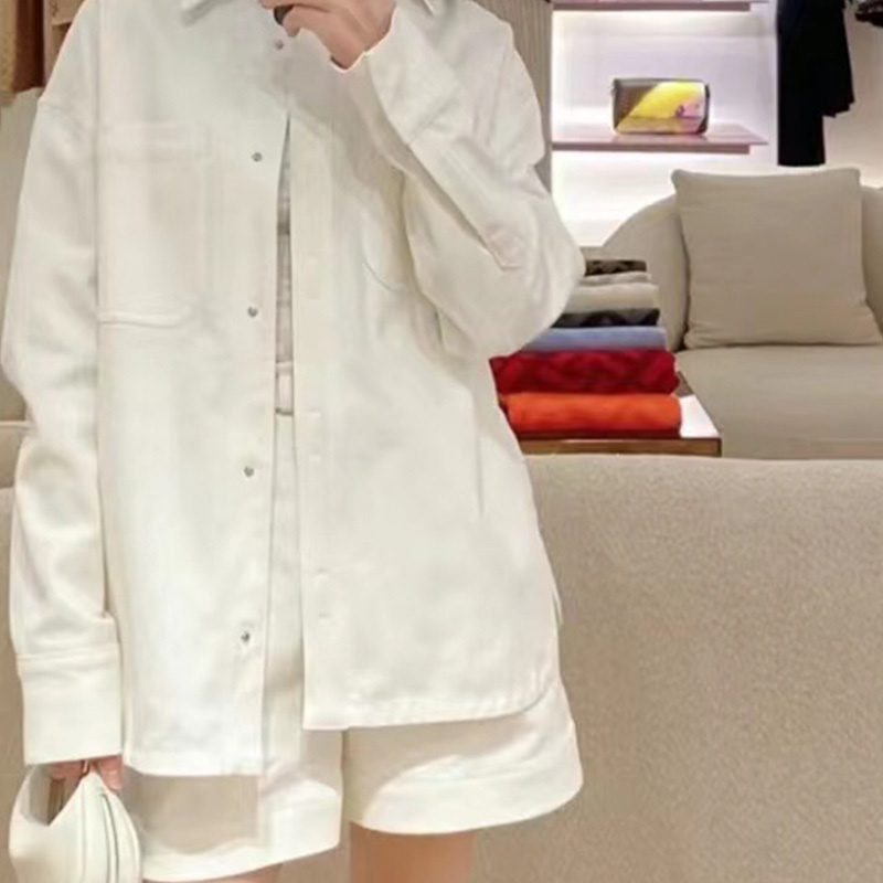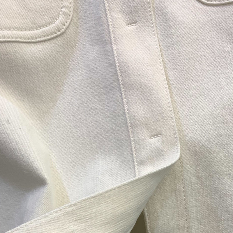 22 Leisure White Denim High Waist Shorts Suits Women Lapel Pocket Long Sleeve Belted Denim Jacket Pleated Lettering Buckle Short