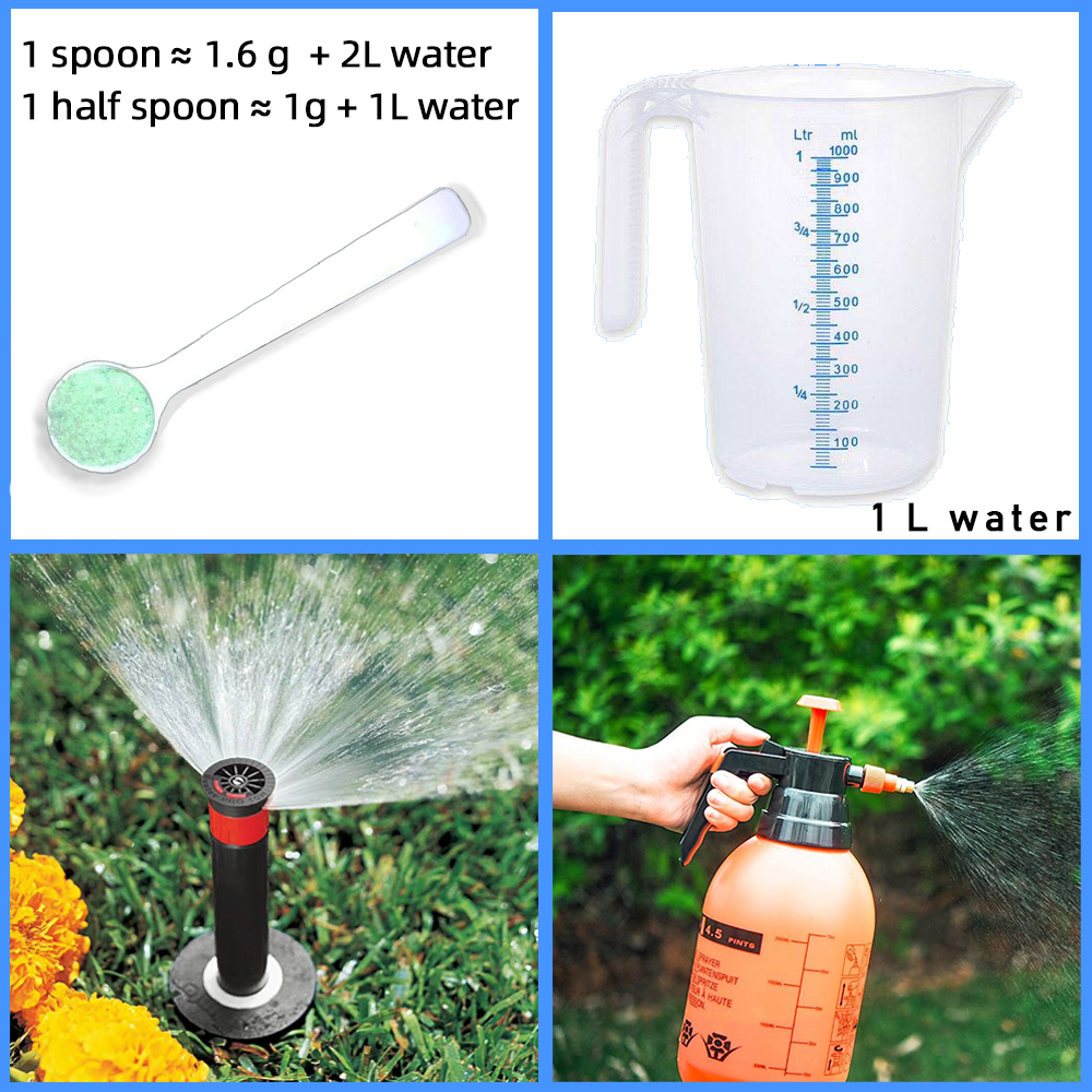 Use 1 g + 1000g (1 L ) water  Spray or watering