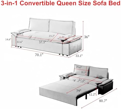 I couldn’t be happier with this black sofa sleeper! It combines sleek modern design with incredible comfort. The velvet finish feels luxurious and soft to the touch, while the cushions provide the perfect balance of support and coziness.What makes this sofa stand out is its versatility. It’s compact enough to fit perfectly in my living room yet spacious enough to function as a sleeper sofa. Converting it to a bed is incredibly easy, making it perfect for overnight guests or lazy weekends. The mattress section is surprisingly comfortable, and the sturdy construction ensures that it holds up well to regular use.This piece has quickly become the centerpiece of my space. I love lounging on it during the day, and my guests rave about how comfortable it is to sleep on at night.Overall, this sofa is a 10/10 for its design, functionality, and comfort. Highly recommend for anyone looking to maximize style and utility in a small space!