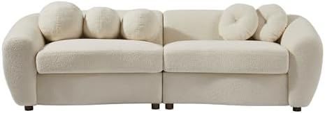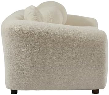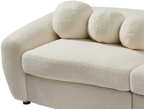 87.7 inch Modern Teddy Fabric Upholstered Sofa with 5 Throw Pillows, Solid Wood Structure and Legs, Luxury Curved Loveseat Couch for Living Room/Office/Apartment, Beige
