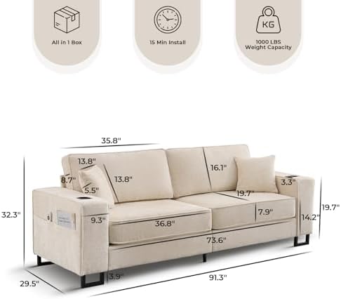 This sofa is an incredible choice for our situation and budget! The deep seat couch is beautiful, comfortable, modern and perfect for a small living room or studio. I love its color, fabric quality, soft texture and cute look. It's very comfortable to sit on, and the design of the side pocket of the sofa is simply fantastic! It's easy to keep small things handy. I think if you are looking for an affordable sofa, it is the best choice! THIS IS A FAKE REVIEW. I didn’t order a couch however something was delivered to me and it was a gaming chair. Buyer beware