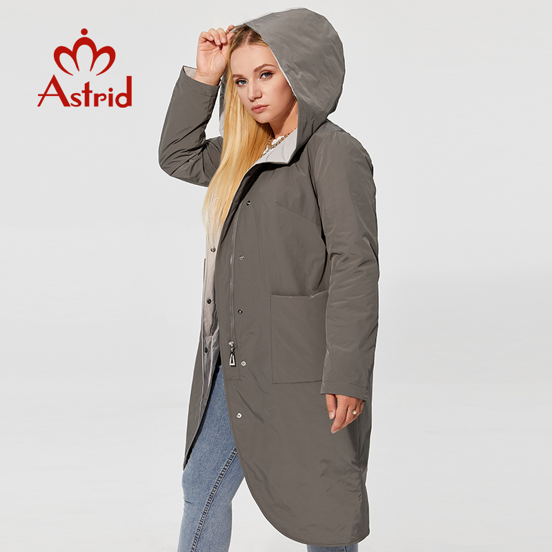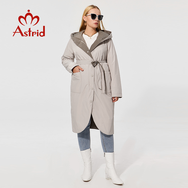Astrid Spring Women's Parkas Plus Size Thin Cotton Elegant Long Jackets Female Coats with Hooded Big Pockets Belt Outerwear