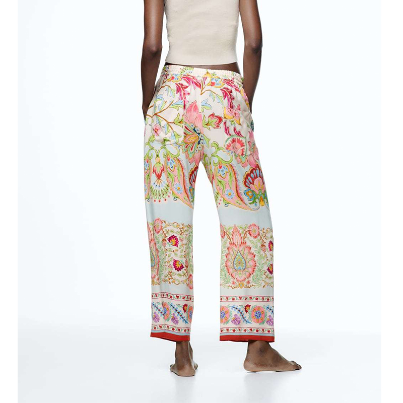 Autumn Women Print Long Kimono Outerwear With Belt And Elastic Waist Wide Leg Pants Female Collection Sets