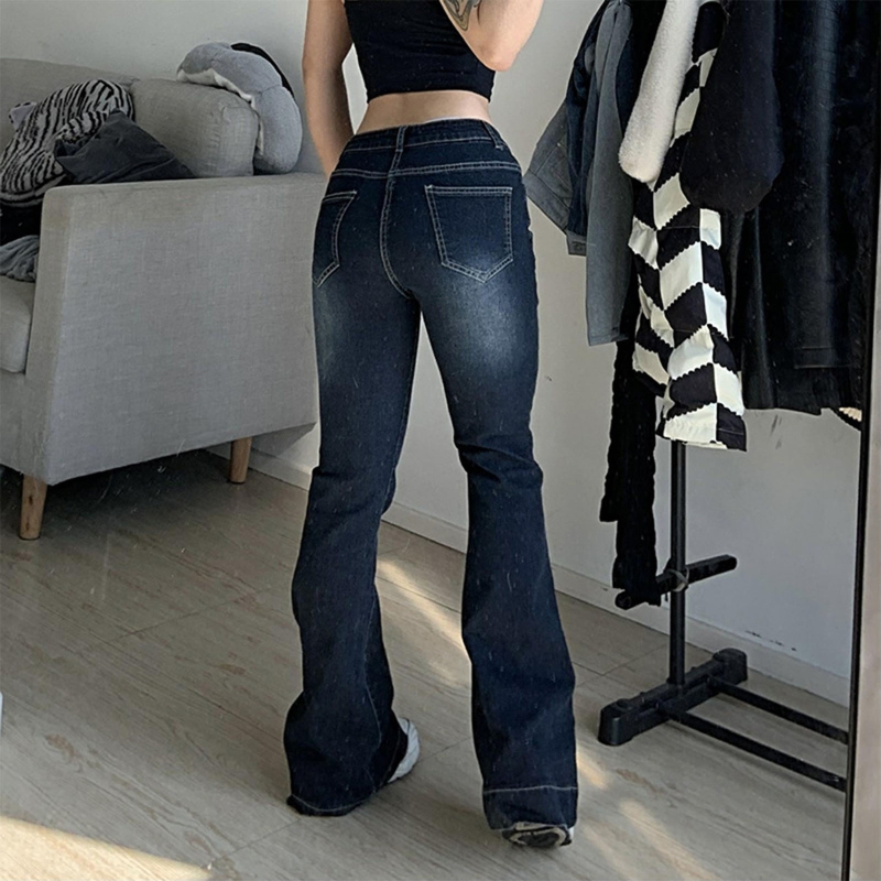 Bell Bottom Jeans for Women Low Waist Trousers Stylish Gradient Blue Flare Jeans Ladies Denim Pants Rise Skinny