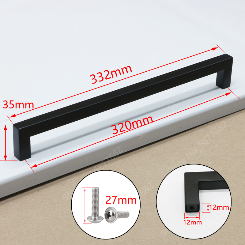 Black Cabinet Handle Square Furniture Hardware Stainless Steel Kitchen Door Knobs Cupboard Wardrobe Drawer Pulls