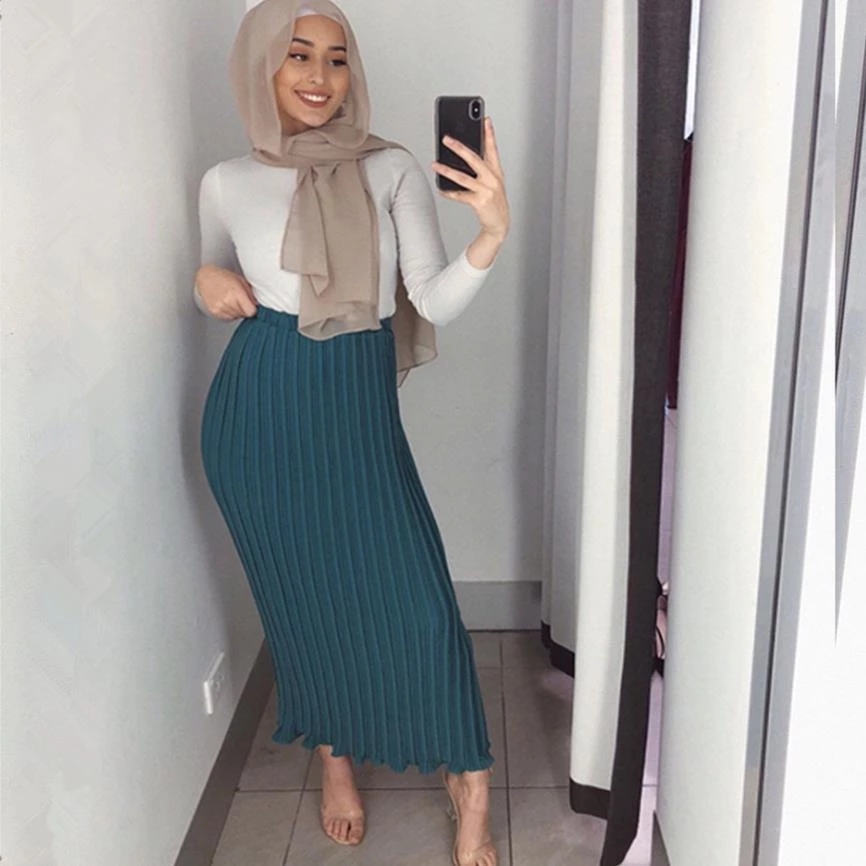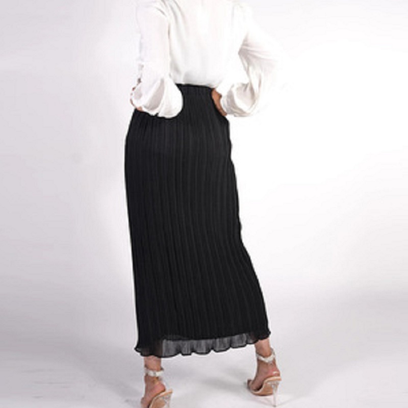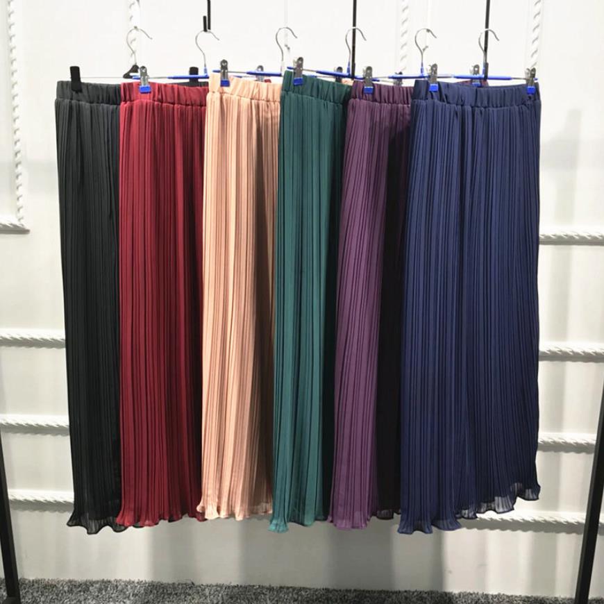Bushra Women's Pleated Skirts Chiffon Long Skirt Princess Elegant Muslim Turkish Dubai Bottoms Abaya Islamic Clothing