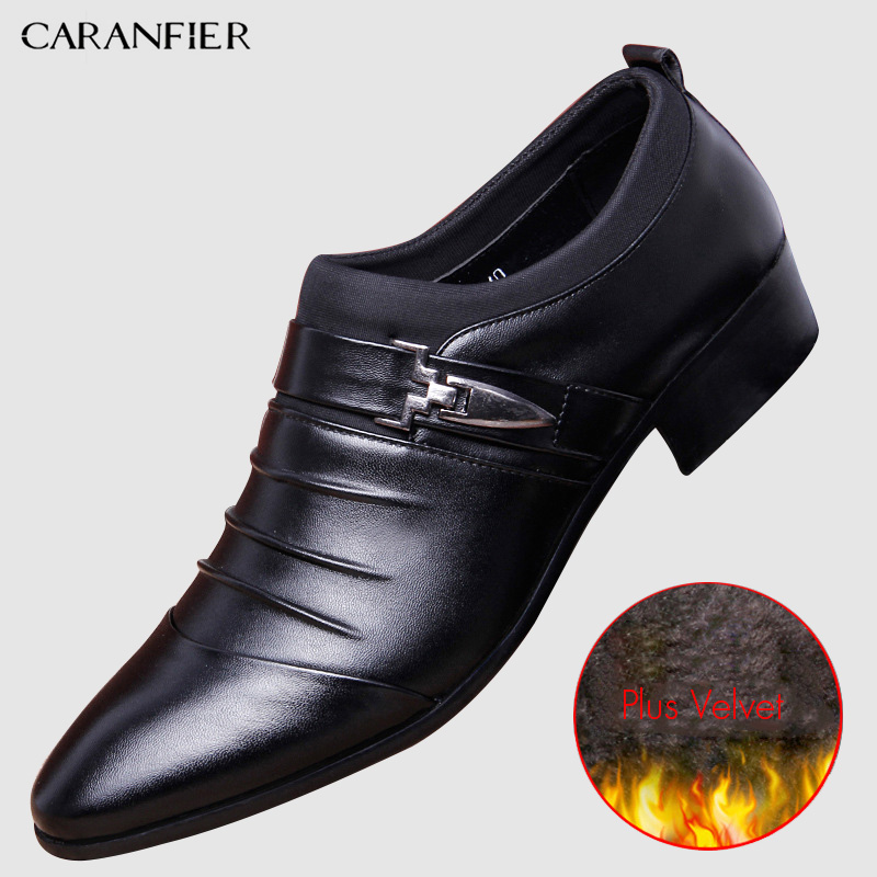 CARANFIER British Men's Slip On Split Leather Pointed Toe Men Dress Shoes Business Wedding Oxfords Formal Shoes For Male