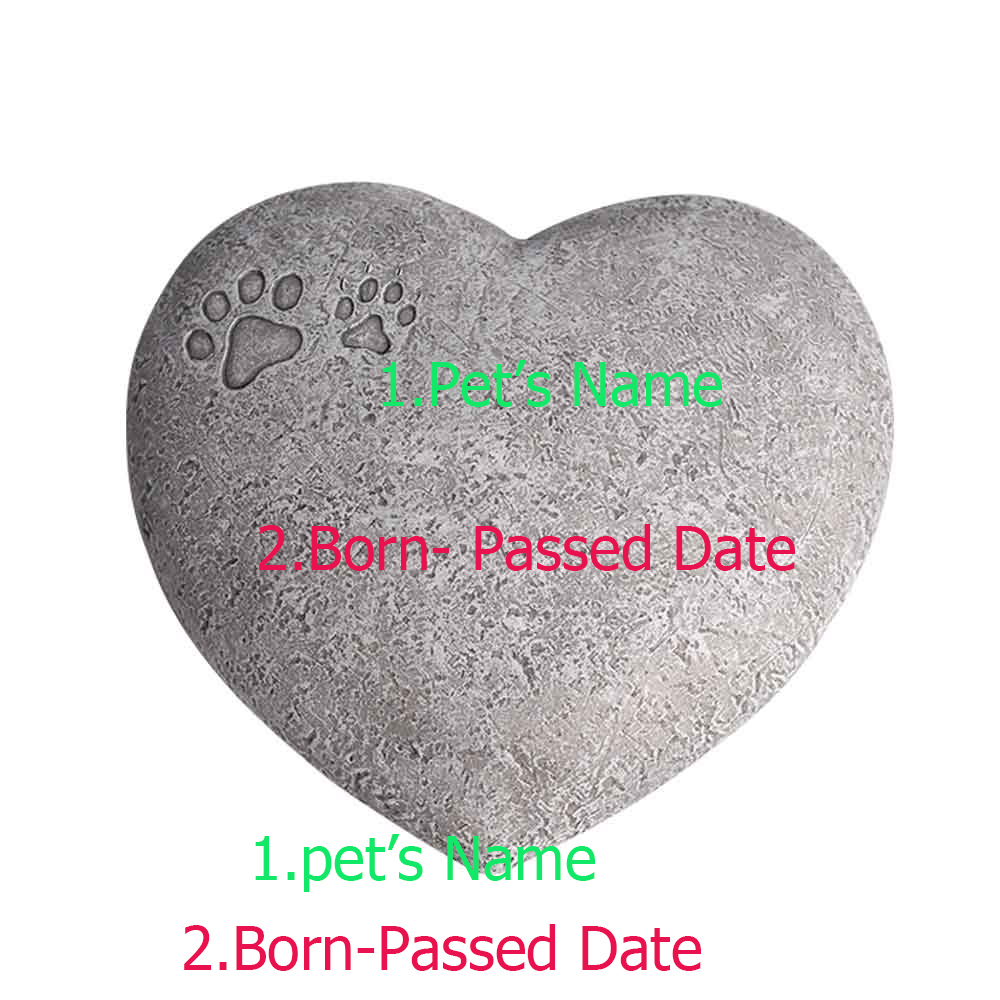 �� Makes a touching pet memorial gift - Hand-carved and painted pet memorial stone, support the customization of name and dates, make this unique last gift for your pet. �� Perfect design: this pet memorial stone has paw prints on the 3-D Heart shaped stone, �� Outdoors and Indoors: Cast in environmental friendly resin to resemble the look of real stone,weatherproof and waterproof,resistant to sunlight also. Put this unique pet garden stone alongside a walkway, under your favorite tree, near a flower bed, or on a porch or patio.Keep you and your pet together in spirit forever. �� Measurement: Size 6.5 x 6 inches and Weight 0.8 pounds �� Servive: Customer service always our first important thing to do, when you receive it, if there any problems, pleast contact with us by mail first time , we will try our best to provide a best solution .