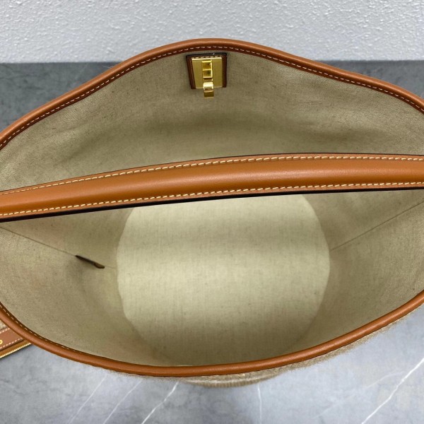 Aside from the now-iconic Celine 16 turnlock, the Bucket bares little resemblance to the original structured shape, allowing this new silhouette to speak to consumers who may not be original fans of the 16 line. Combining the elegance of textile with Celine Logo and smooth calfskin. Celine’s 16 bucket bag is a resolutely contemporary creation.