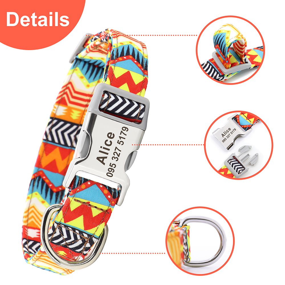 Name: Custom Large Dog Collar Cute Print Personalized Pet Collar Nylon Puppy Dogs ID Collars Engraved Name for Small Medium Large Dog