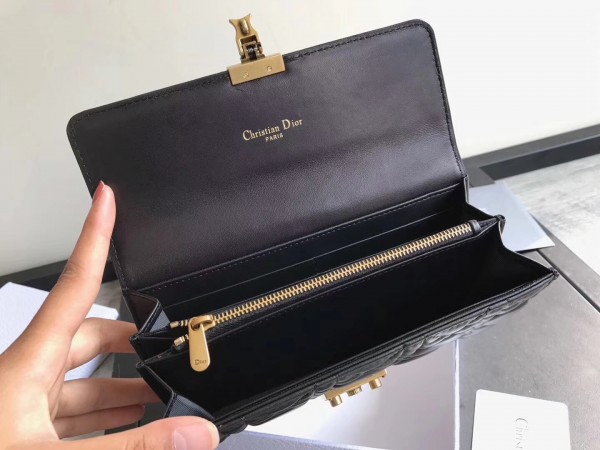 Dior DiorAddict Continental Wallet In Black Lambskin